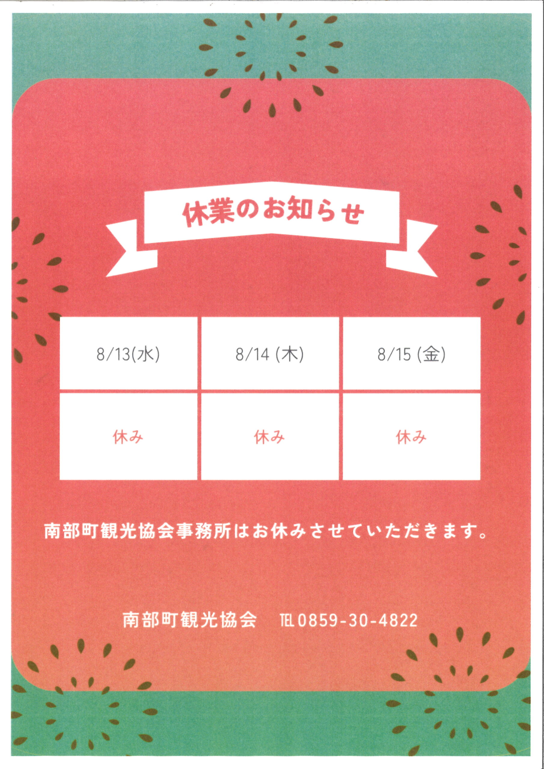 休業のお知らせ